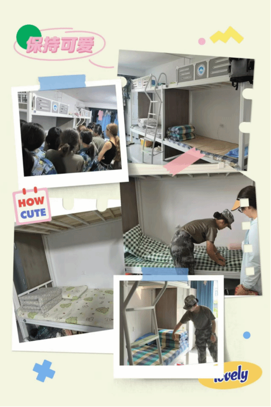 ◆内务整理 寝室作为老员工的主要活动场所,物品摆放及卫生清扫问题极其重要。通过员工们的共同努力,行李井然有序,寝室整洁明亮,展现的是端正的态度和严谨的作风,让寝室不再仅仅是休息的场所,更是培养团队精神和责任感的地方。