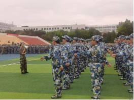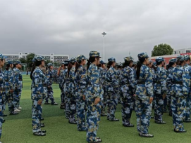 骄阳下,同学们身着整齐的军装,身姿挺拔如松。每一个坚定的步伐,每一声嘹亮的口号,每一次摆臂都整齐划一,每一个军礼都一丝不苟,挺拔的身影与迷彩交相辉映,这是独属于青春的色彩,都彰显着青春的活力与担当。